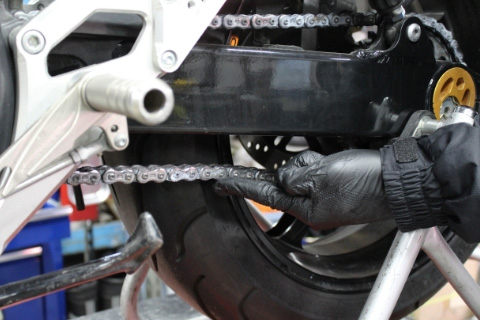 初期伸びといって新品のドライブチェーンは伸びやすいので、ちょうど1,000kmぐらいが1回目の調整時期になります。
