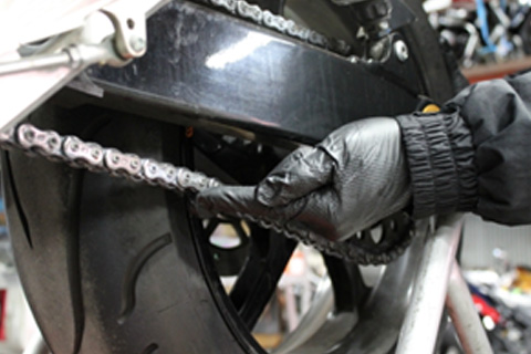 クラッチ、チェーン/ベルトの張り・摩耗・給脂、スプロケット摩耗。