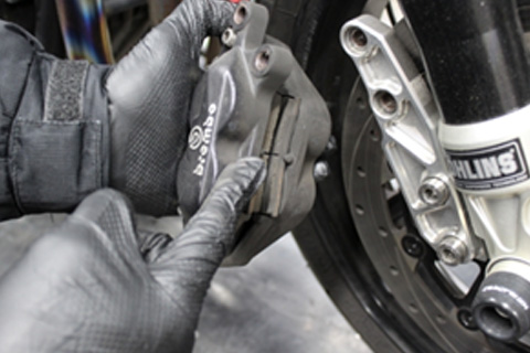 オートバイには使用しているうちに摩耗したり、消耗したりする部品がありますので、点検作業時に同時に確認を行います。